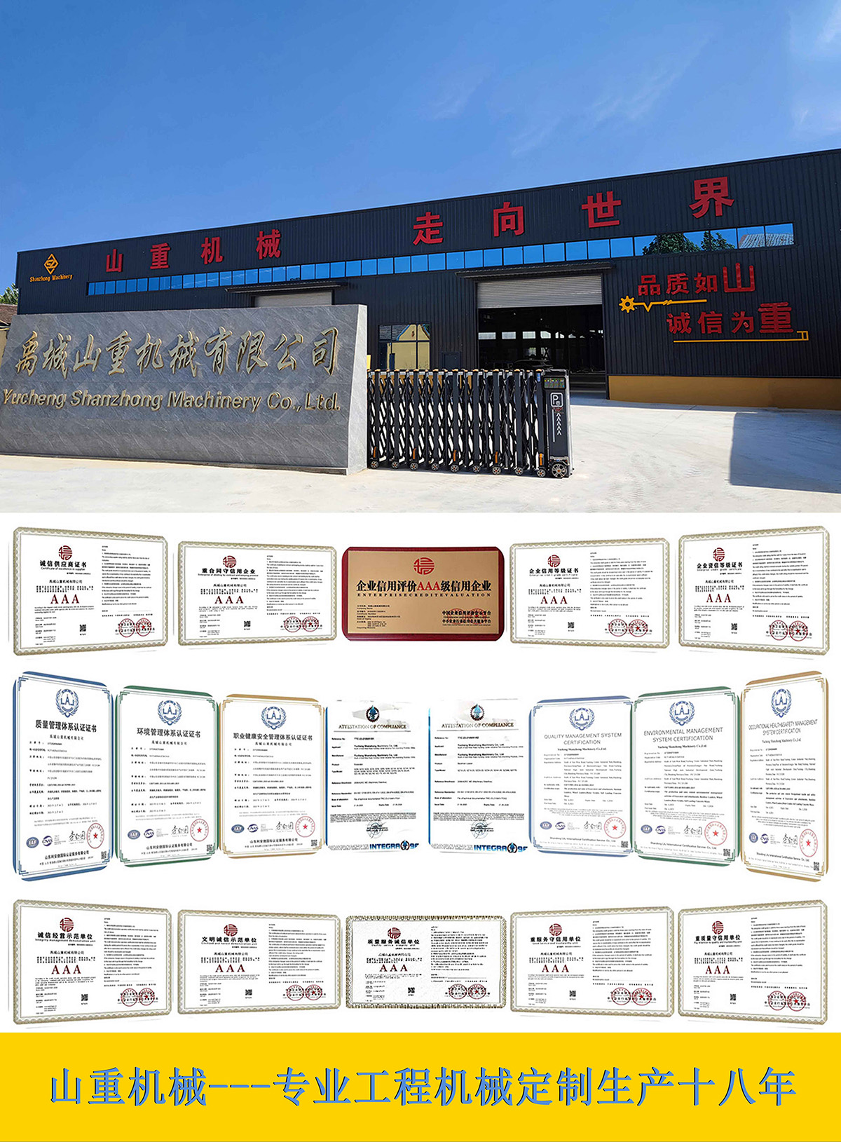 集团公司自2007年初成立至今,致力于工程机械专业定制化生产18年。其产品包含:轮式挖掘机(4-21吨),履带挖掘机(1-50吨),以及各种型号配置的挖掘装载机,装载机等。满足客户或招标的特殊要求。我们始终秉持:创新,合作,共赢的经营理念,共同来做大做强国产工程机械行业。